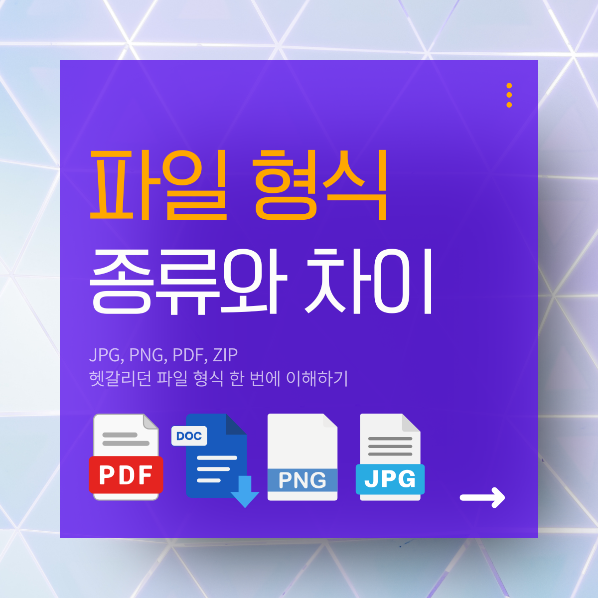 컴퓨터를 사용하다 보면 다양한 파일 형식을 접하게 된다. 사진을 저장할 때 JPG나 PNG를 보게 되고, 문서를 받을 때는 PDF나 DOC 파일을 보게 된다. 처음에는 그냥 열리면 되는 파일이라고 생각했지만, 작업을 하다 보니 파일 형식에 따라 용량, 화질, 편집 가능 여부가 모두 달라진다는 점을 알게 되었다. 특히 블로그나 업무 자료를 정리할 때 파일 형식을 잘 선택하는 것이 생각보다 중요했다. 기본적인 파일 형식 종류와 특징을 정리해 두면 작업할 때 훨씬 편해진다. 자주 사용하는 파일 형식을 중심으로 정리해 본다.